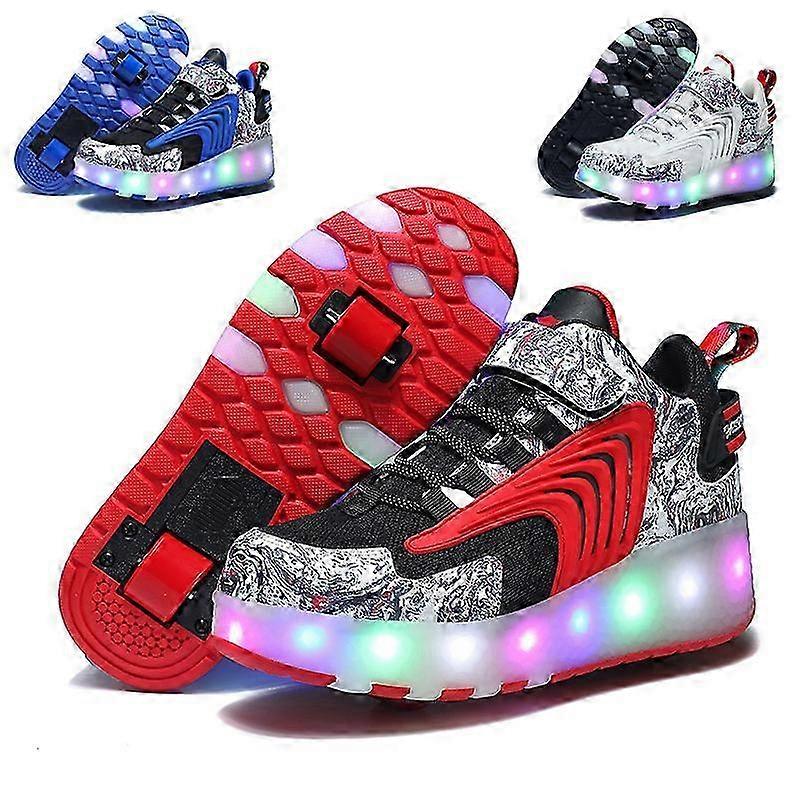 2025 Children's Skates Leisure Sports Shoes and Men's Invisible Double Roller Shoes Led Flashing Light With Lamp Charging Size(30-40) black red