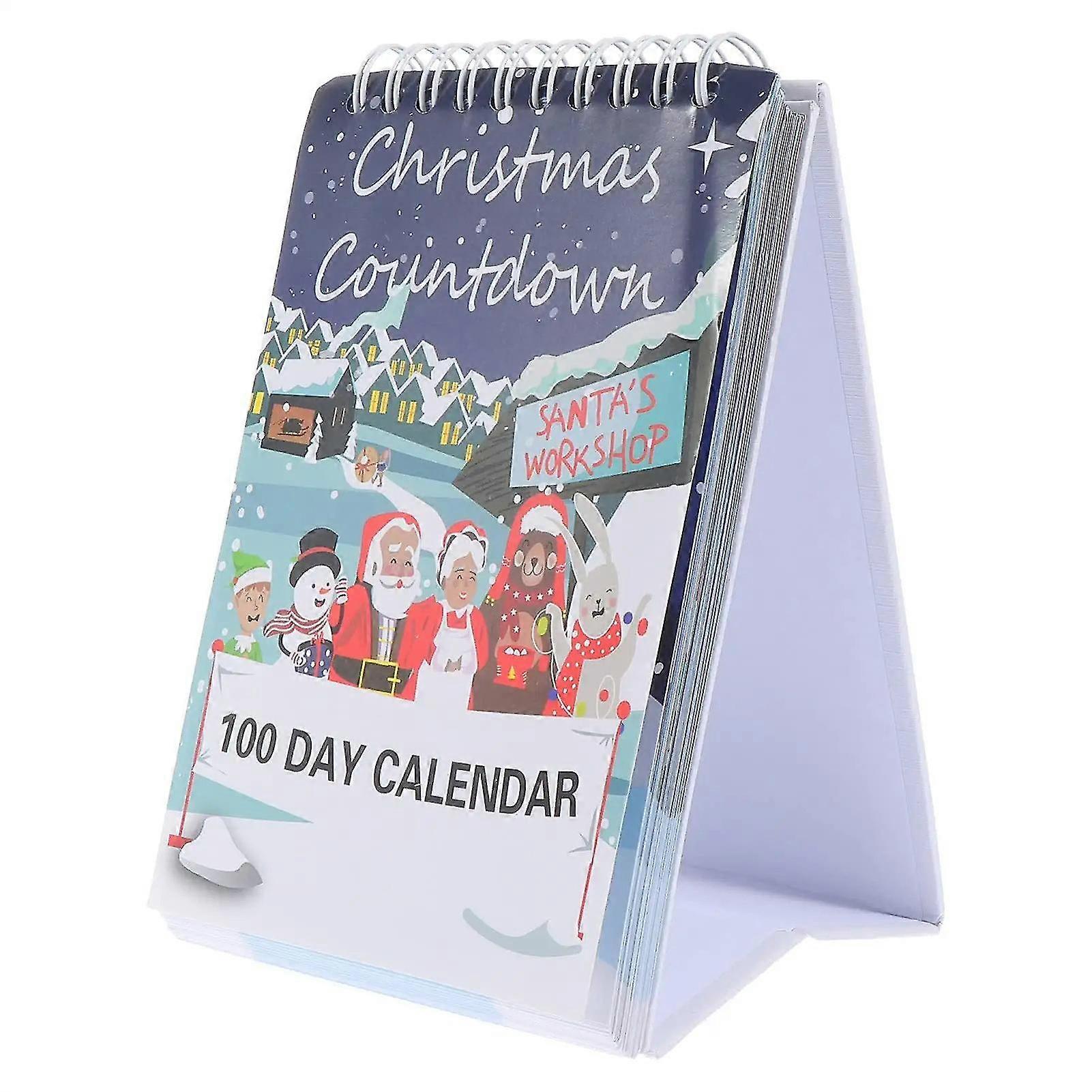 2025 Christmas Advent Calendar 100 Days Twin-wire Binding Paper Home Office Room Holiday Decoration Desktop Countdown Calendar Festival Gift