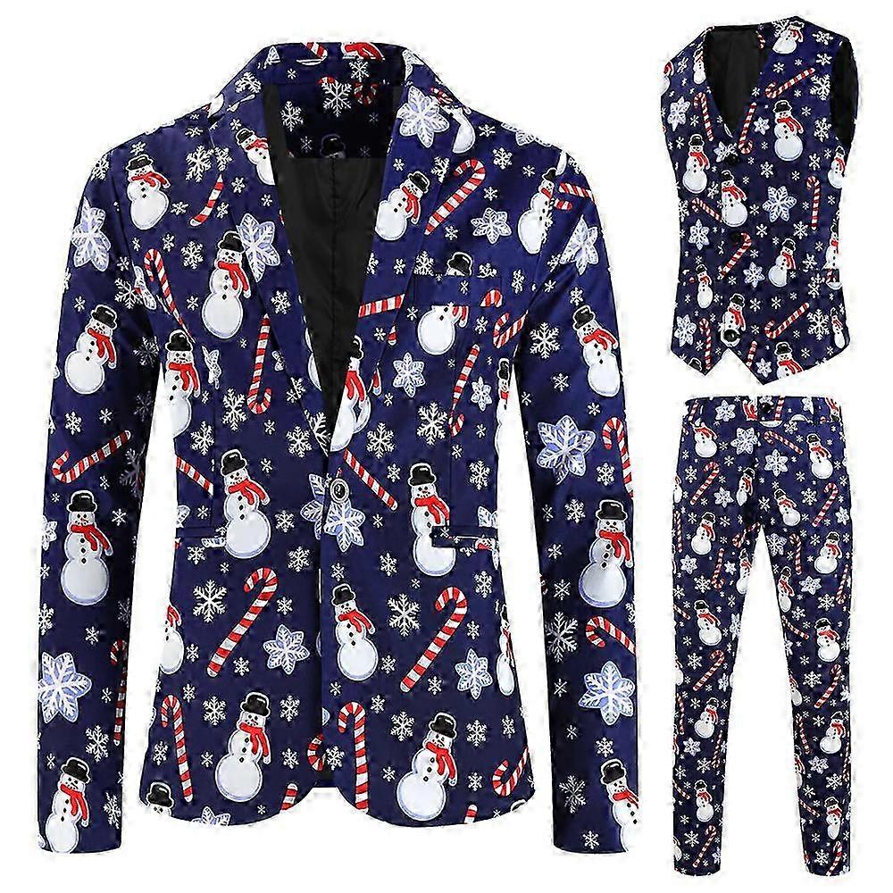 2025 New Men's Christmas 3D Printed Tuxedo Casual Suit Three-piece Suit Men