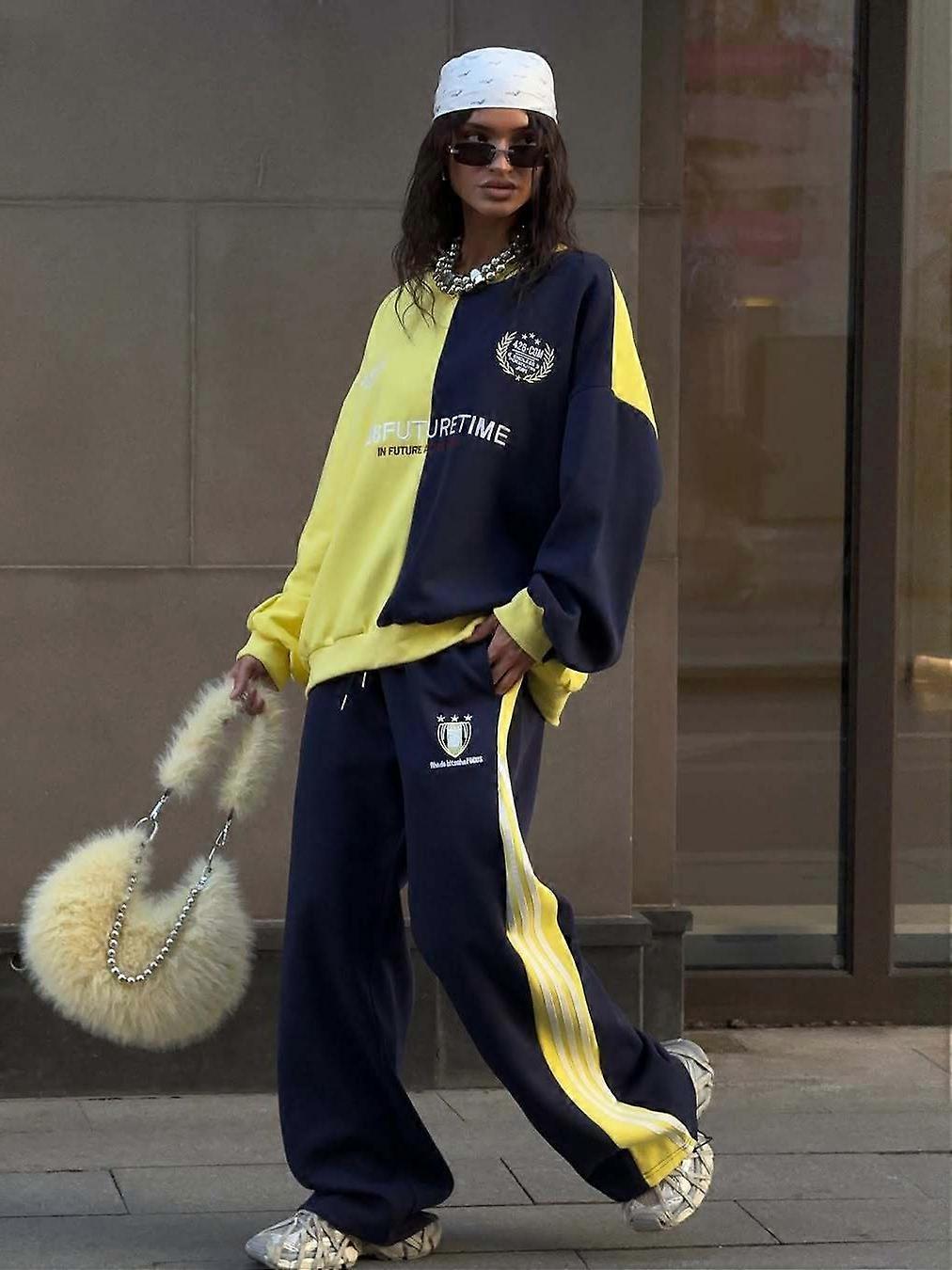 2025 New Women's Color Block Hoodie Pants Set Streetwear Casual Sportswear Outfit