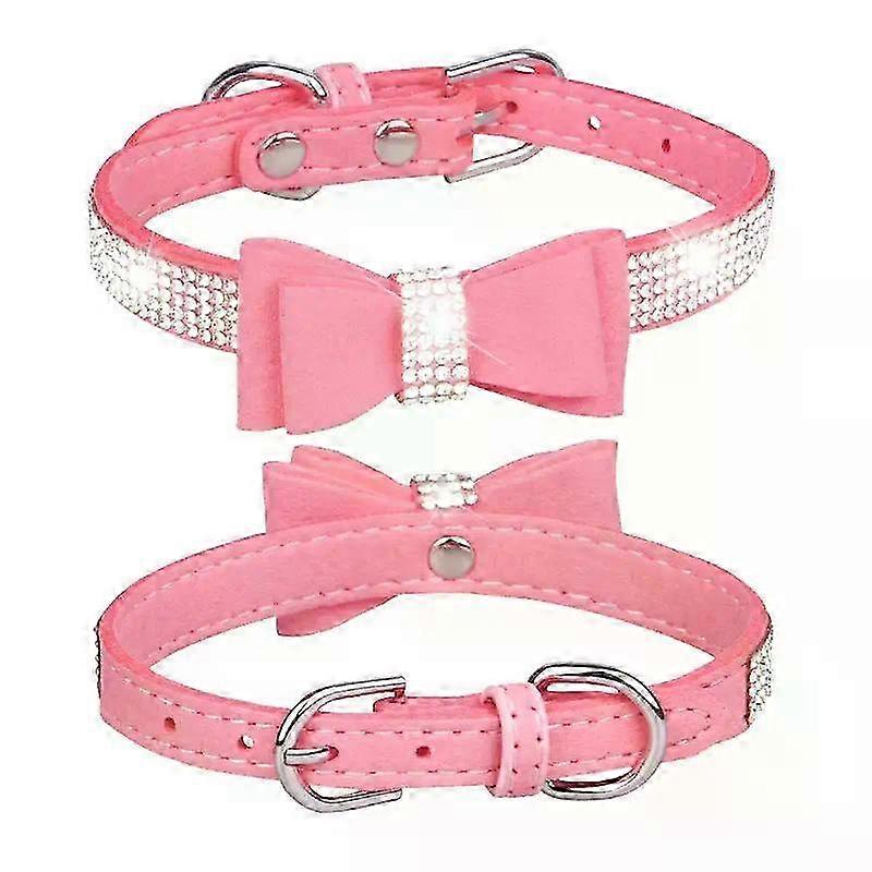 2025 Pet Rhinestones Bow Knot Collar Dog Cat Bling Soft Cute Tie Collar PU Leather Pet Collar Pet Dog Supplies