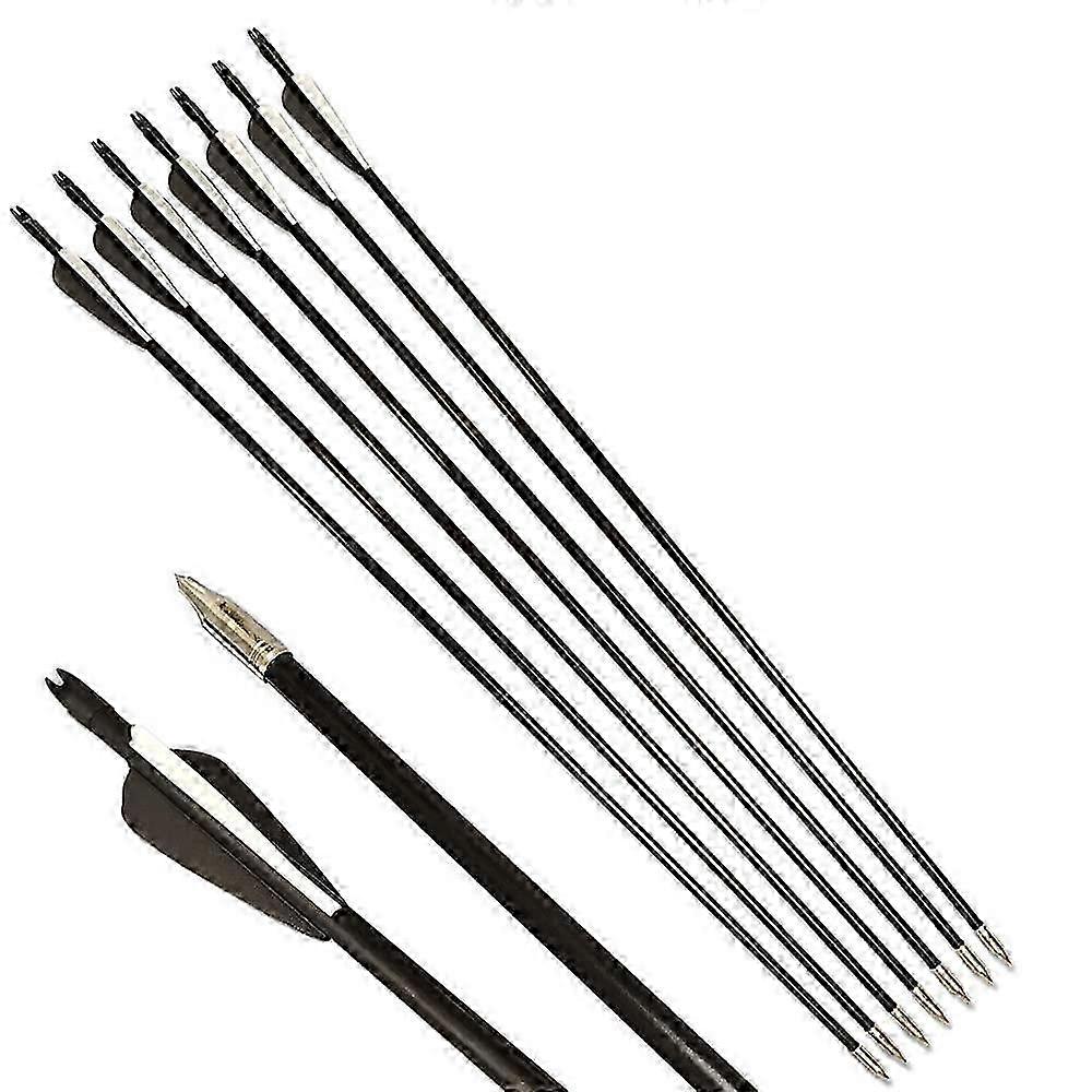 2025 30 Inch Archery Fiberglass Arrows OD 8 mm Spine 500 Target Practice Arrows with 3 Inch Rubber Feathers for Recurve Compound Bow, Pack of 12 Black