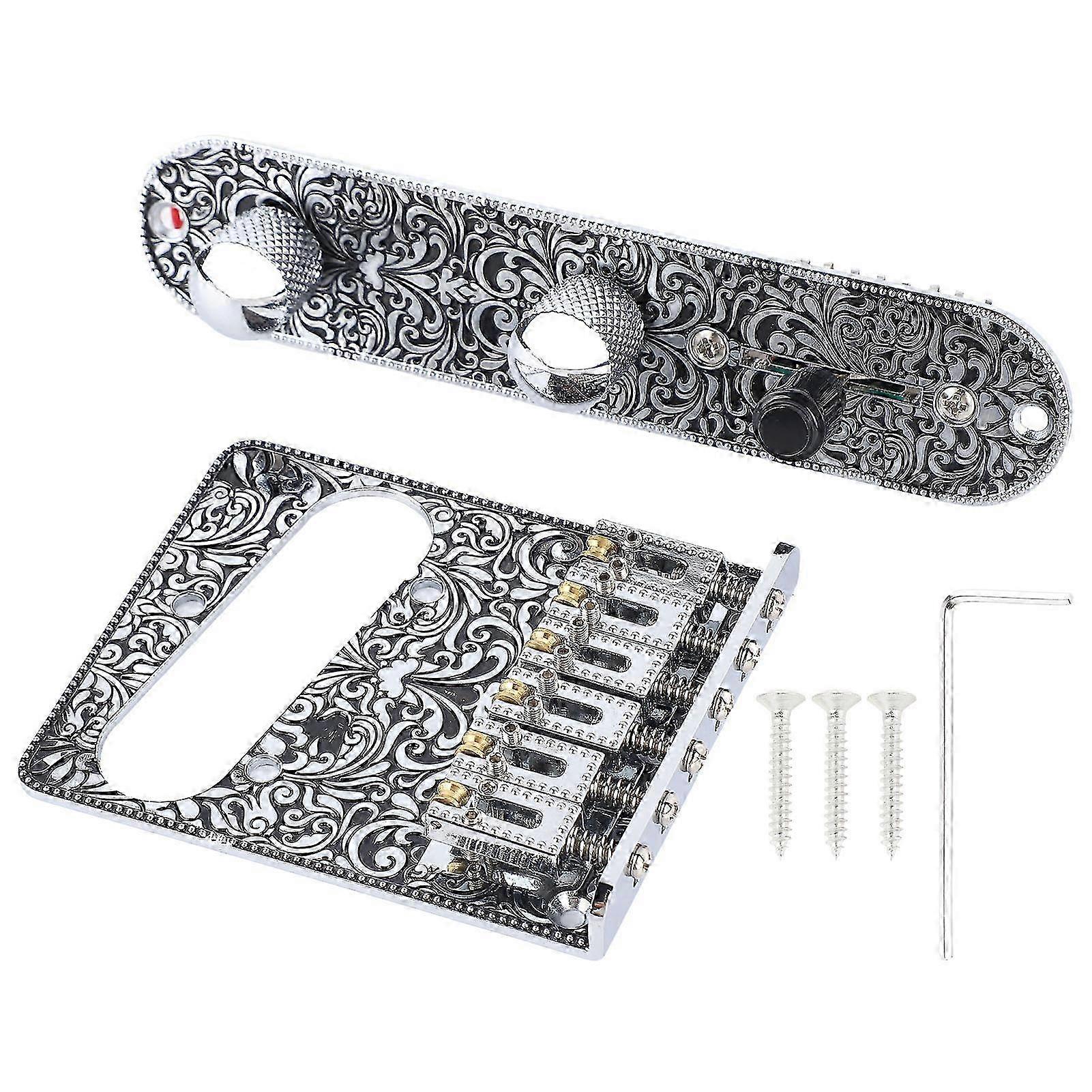 2025 Engraved Electric Guitar Bridge Volume Control Plate Set Guitar Bridge Control Plate Kit for TL Silver