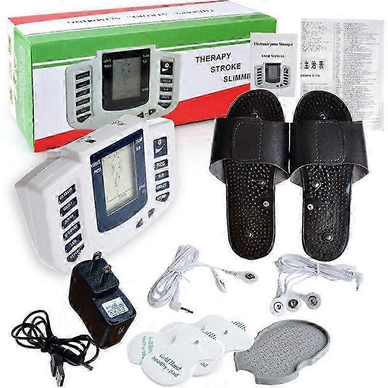 2025 Electric Muscle Stimulator Pulse Massager Meridian Therapy Tens Unit Acupuncture Body Massage Relax 4 Electrode Pads Slipper