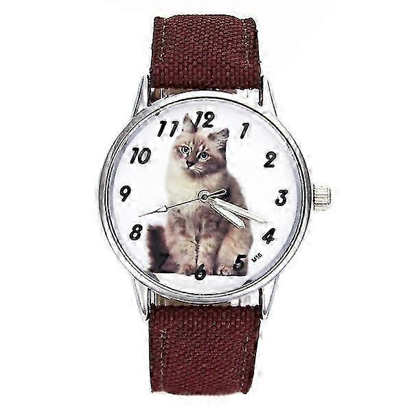2025 Cute Cats Fashion Pet Women's Cat Ladies Dark Brown Canvas Cloth Strap Watch 20mm Sport Quartz Wrist Watches