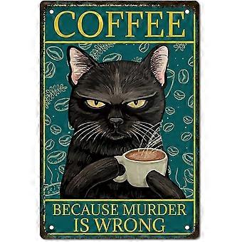 2025 Black Cat Metal Tin Sign Coffee Because Murder is Wrong Metal Poster Vintage Retro Art Mural Hanging Iron Painting Plaque Funny Animals for Home