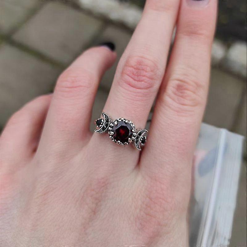 2025 Vintage Bohemian Flower Red Crystal Rings for Women Gorgeous Charming Silver Color Ring Wedding Engagement Christmas Gift