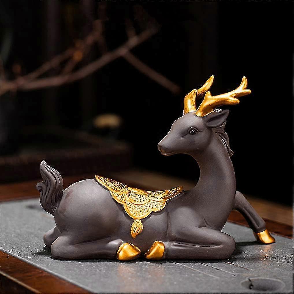 2025 Creative Purple Clay Chinese Kungfu Lucky Deer Mascot Animal Model Tea Pet for Home Decorations Tea Tray Decoration