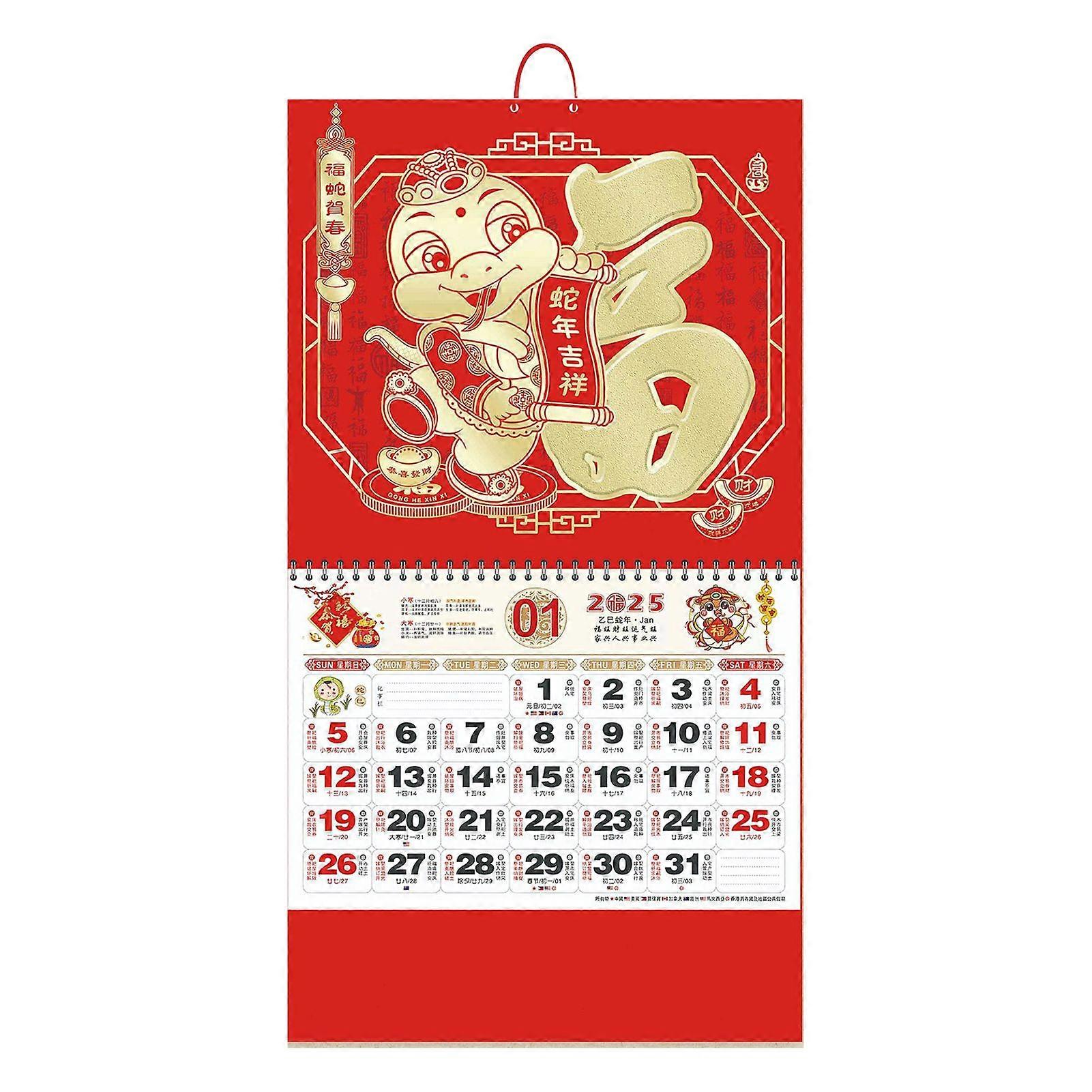 2025 Chinese Lunar Calendar Zodiac Snake Year Wall Calendar Monthly Hanging Calendar with Lunar Dates Traditional Chinese Calendar for Home Decor