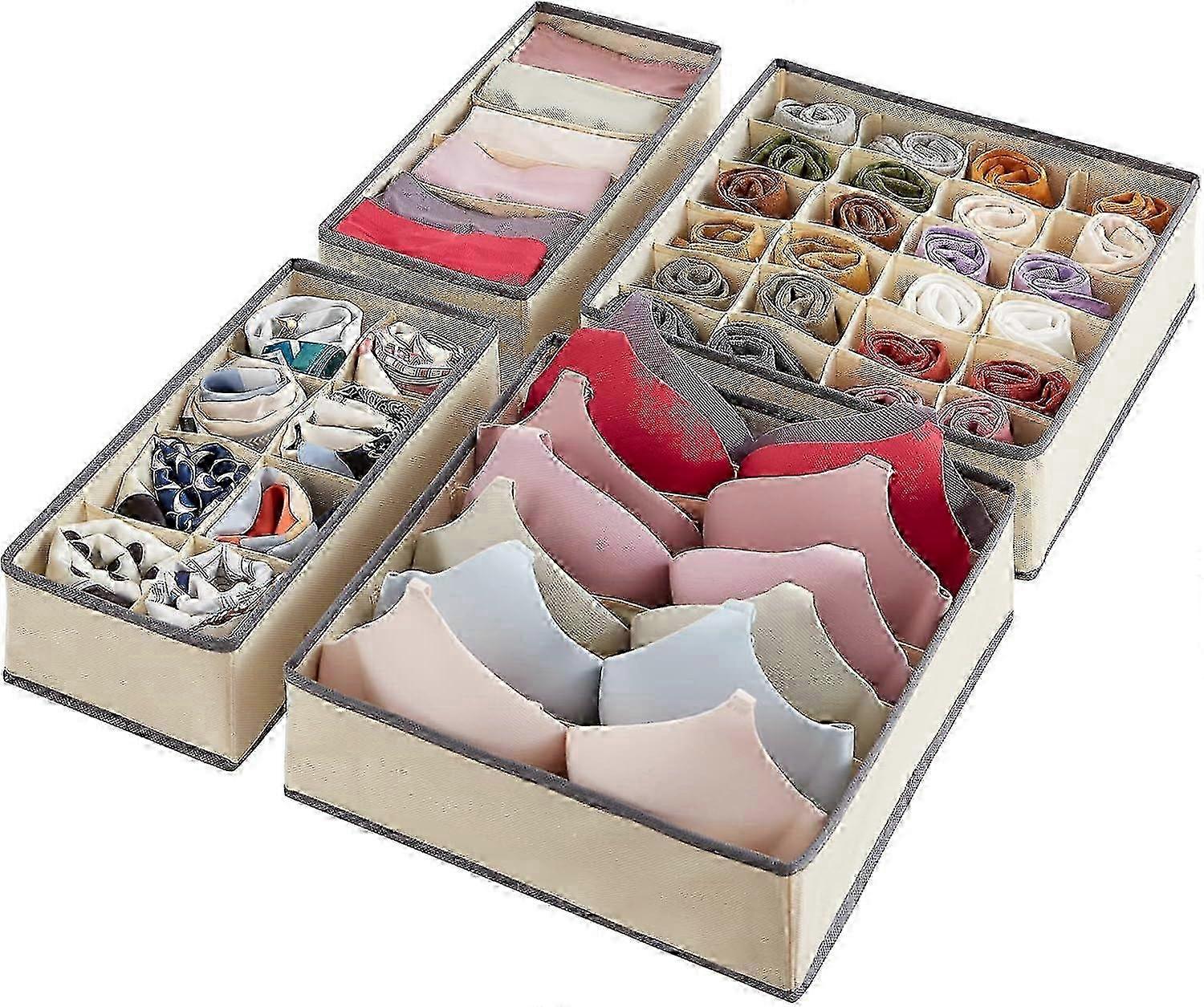 2025 Drawer Underwear Storage Dividers 4-Piece Set Fabric Foldable Dressing Table Storage Basket Organizer and Storage Box, Beige