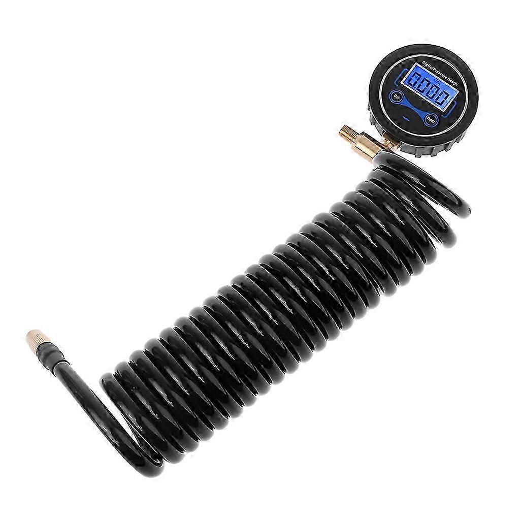 2025 Convenient Deflator Inflator Pressure Gauge Monitor for Air Pump for 3m Extension Coil Hose Easy to Use 200 PSI Air Gaug Black
