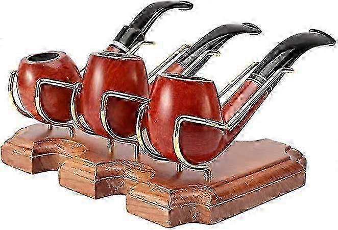 2025 Wooden Tobacco Pipe Stand Holder with 3 Display Metal Slots, Family Home Pipe Accessories for Tobacco