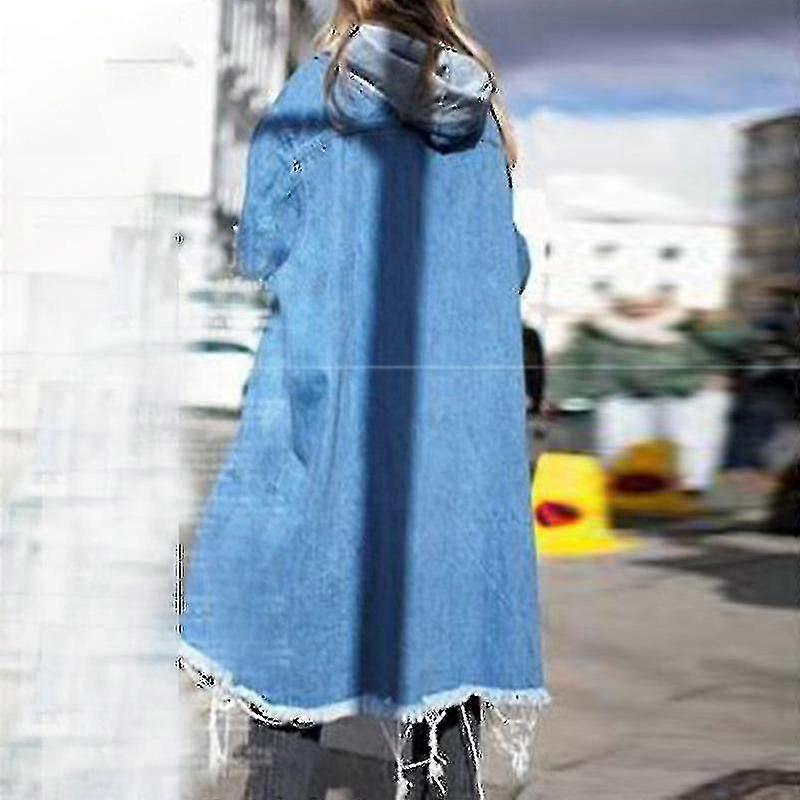 2025 Ladies Baggy Denim Jackets Long Sleeve Drawstring Trench Coat Fall Hoodies Overcoats