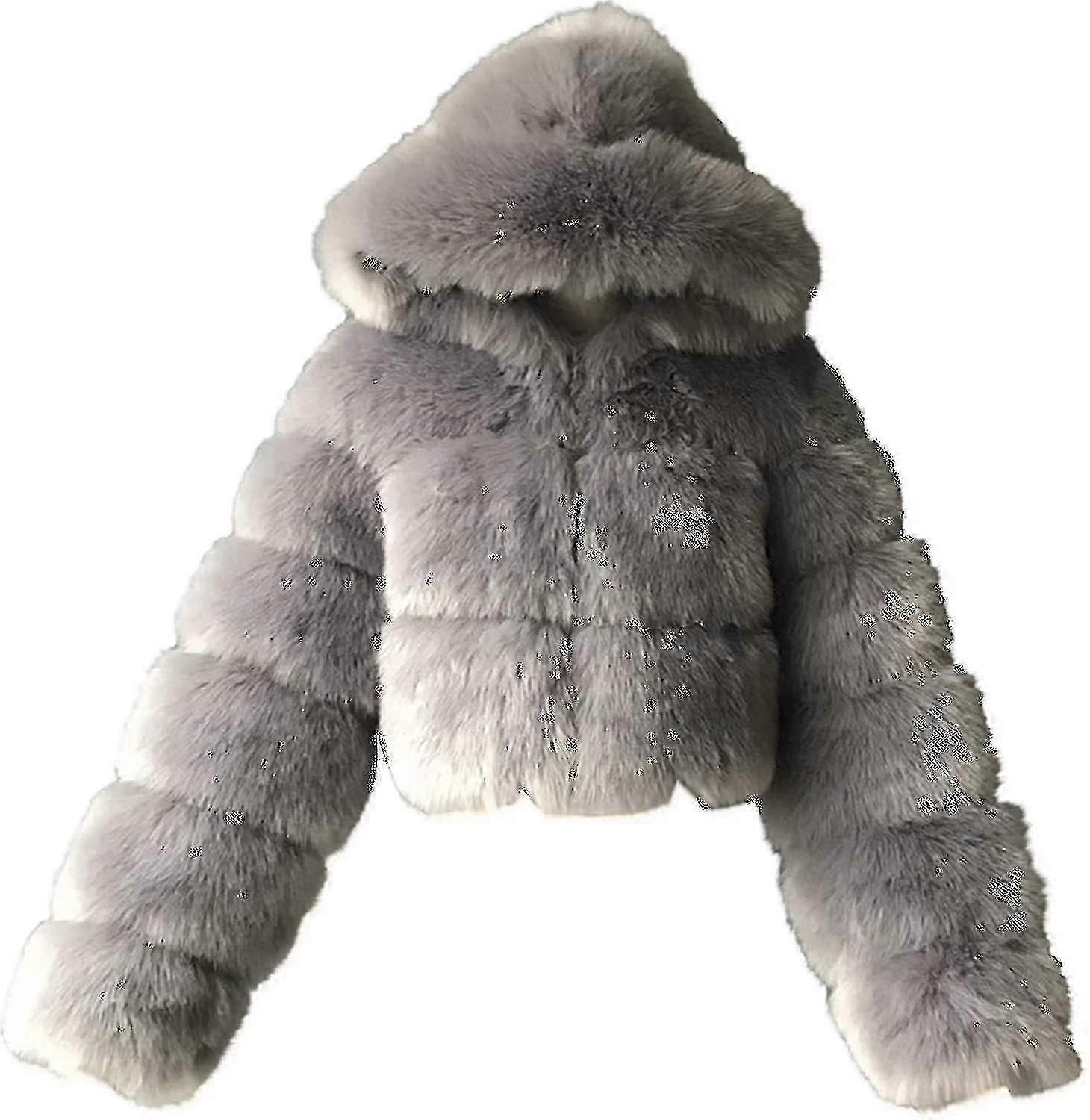 2025 Faux Fur Coat Women With Hood Cropped Bubble Coats Fleece Short Warm Jackets Plus Size Winter Coats For Women
