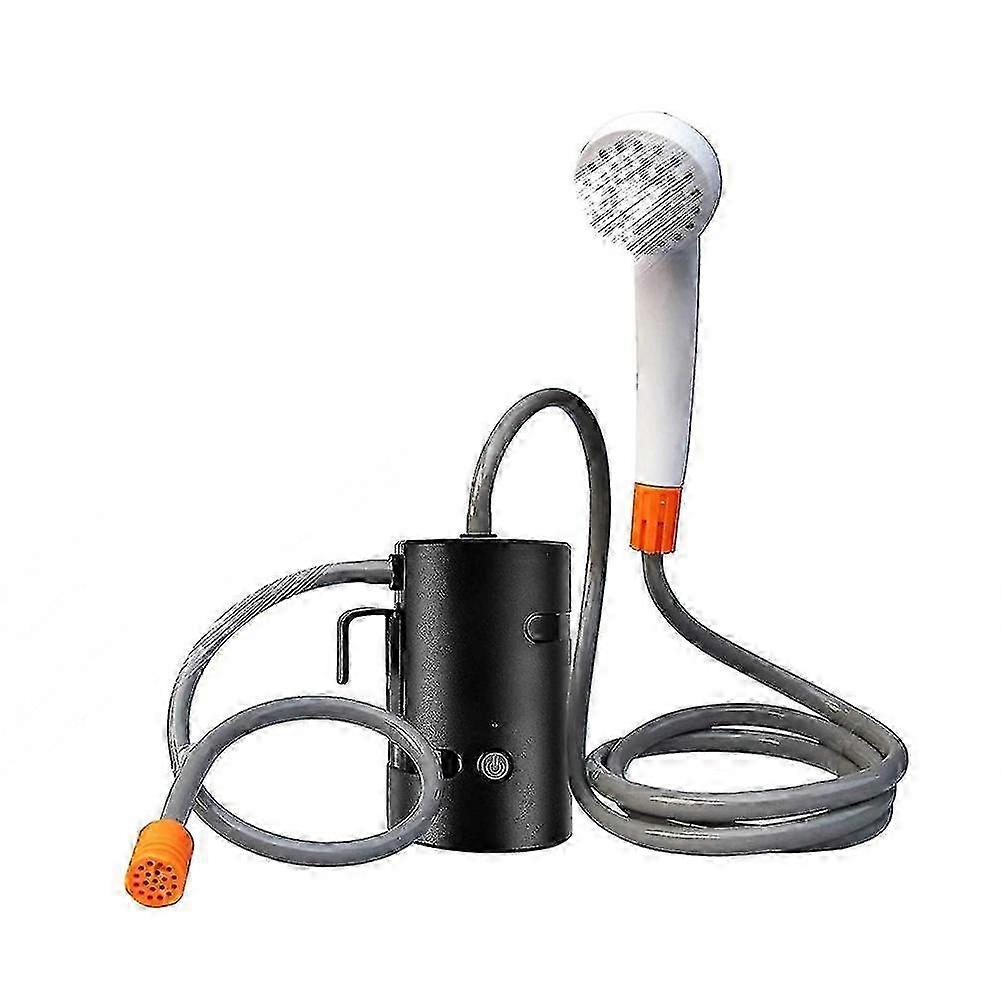Portable Outdoor Shower, IPX7 Waterproof &USB Rechargeable Pump for Hiking Travel Sport Caravan UPGRADED VERSION -- Our 1.8m long hose pump come with 3 Led lights easier and to take a shower at a wonderful camping night. & POWERFUL PORTABLE SHOWER -- Provide 2 Flow Rate for comfortable bathing experience. One is 3L / min (0.8gal/min) and another one is up to 4L /min (1gal/min), good for seniors, babies or Pets to choose their own comfortable flow rate. HANDS FREE OPERATION -- Our battery shower with a pump lift up to 2.4 meters, it can handle heights from 0.5m to 2.2m. Suction cup and S-hook are included, use the suction cup to securely stick to any flat ,or use the S-hook to hang it from . CONVINIENT USB CHARGING -- Adopt USB rechargeable 4400mAH batteries, separated from the pump. No need to immerse the batteries into water, which can protect and enhance the batteries life. Differ from traditional design. EASY TO ASSEMBLE & STORAGE -- Connect tubes to pump & shower head, drop the suction pipe into the bucket of water, press the on/off button, ready to get a shower! Perfect for camping, hiking, kid bathing, pet cleaning, car washing, plants watering, windows and backyard cleaning. Colour:black Material:plastic Package Contents: 1 * Black Pump 2 * Water Hose 1 * Hook 1 * Suction Cup 1 * Shower Head 1 * USB Cable Only the above package content, other products are not included. Note: Light and different displays may cause the color of the item in the picture a little different from the real thing. The measurement allowed error is +/- 1-3cm. Note: Due to the light and screen setting difference, the item's color may be slightly different from the pictures. Please allow slight dimension difference due to different manual measurement. Sold by-DIMEANI official store