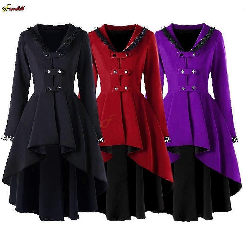 2025 Women ElegantFashion Steampunk Dress Victorian Medieval High Autumn Winter Dance Patry Robe Lace Pathcwork Tuxedo Costumes