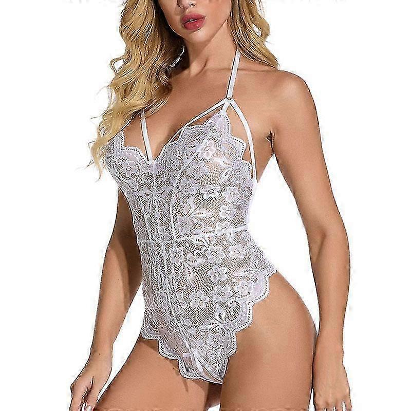 2025 Women Sexy Nightwear Crotchless Bodysuit Costume Lace Lingerie See-Through Open Back Nightgown