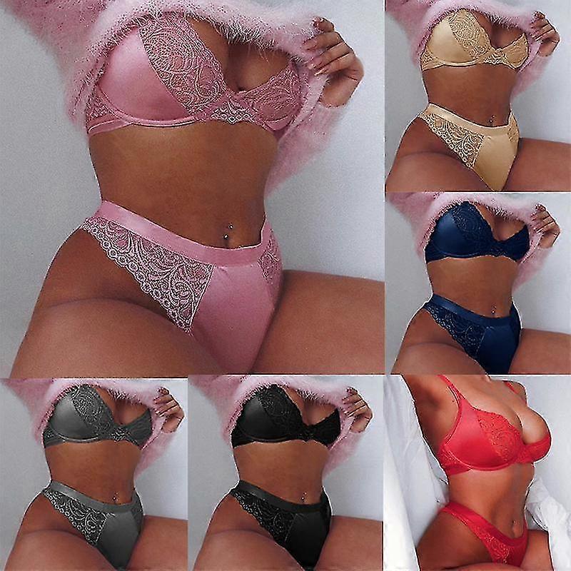 2025 Women Solid Color Lace Lingerie Set See-through Lace Bras With Panties Underwear