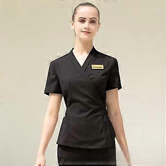 2025 High Quality Uniformes Overalls Women's Khaki Top+Pants 2 Piece Set Hotel Staffs Work Wear Beauty Salon SPA Uniform