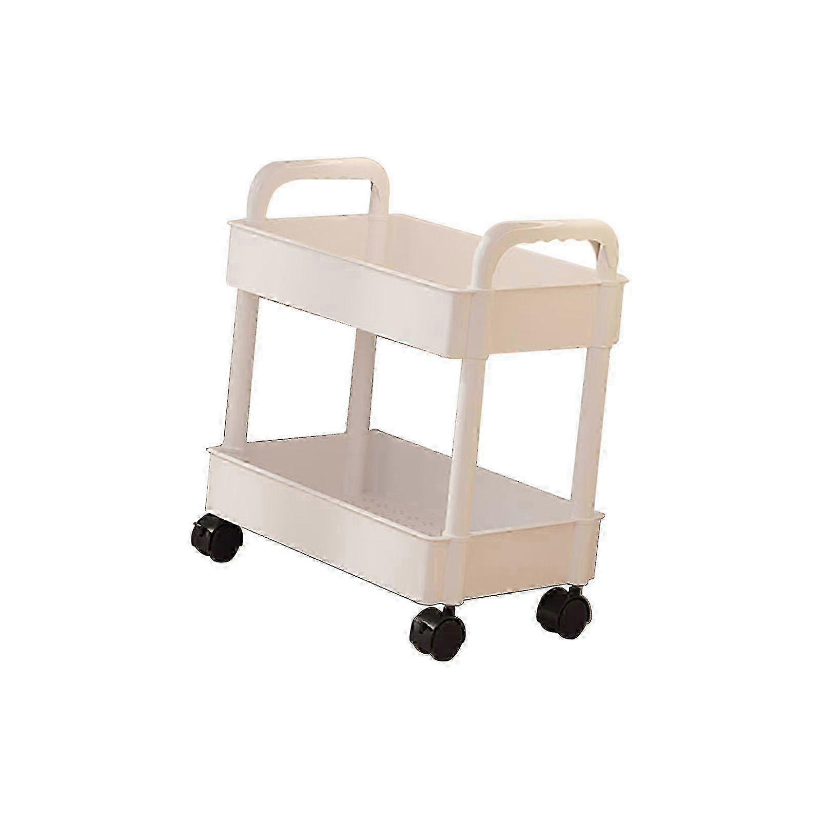 2025 2-Tier Rolling Utility Cart with Wheels, Mobile Storage Trolley Organizer for Bedroom Kitchen Bathroom
