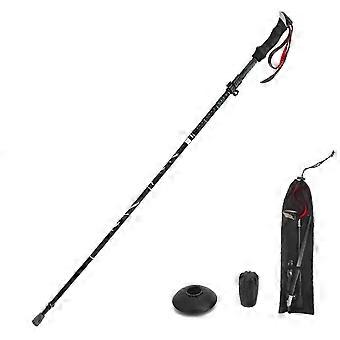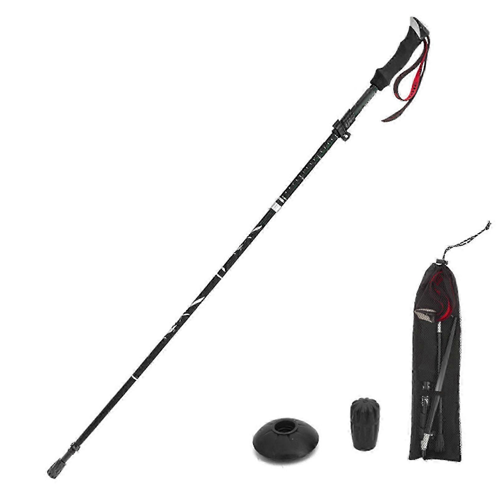2025 Lightweight Aluminium Folding Trekking Pole Black Adjustable Walking Stick 5-Section Collapsible Design Anti-Slip Handle Singl