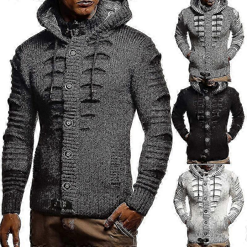 2025 Vintage Cardigan Men Casual Single Breasted Solid Color Oversized Sweater Mens Knitted Hooded Cardigans Winter Fashion Sweater
