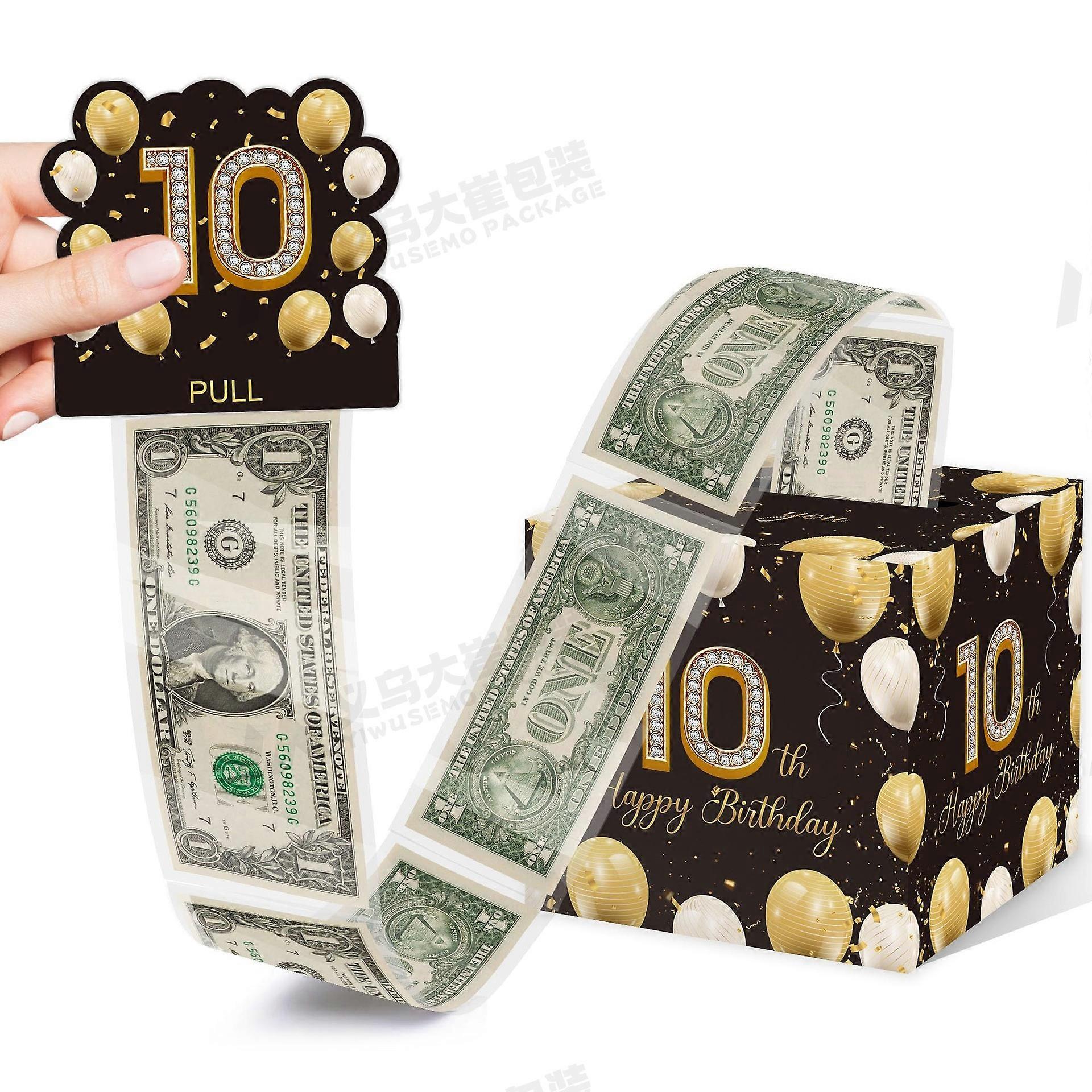 2025 Black Gold Happy Birthday Paper Money Box Black Gold Surprise Birthday Party Halloween Gift Christmas
