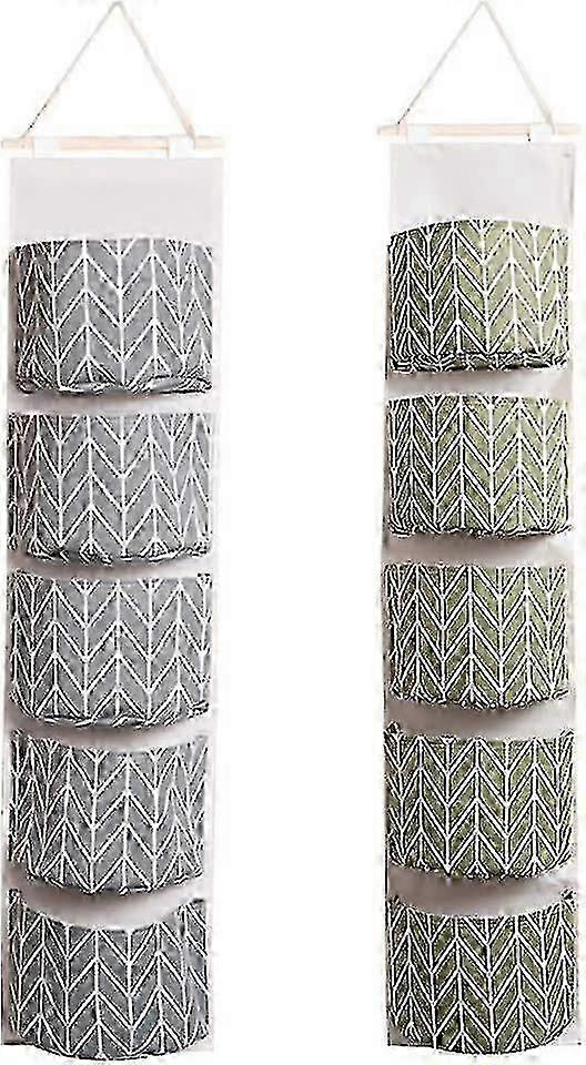 2025 2 Pack Over The Door Storage, Waterproof Wall Closet Hanging Storage Organizer With 5 Pockets, Cotton Linen Fabric Hanging Shelves Pocket (gr