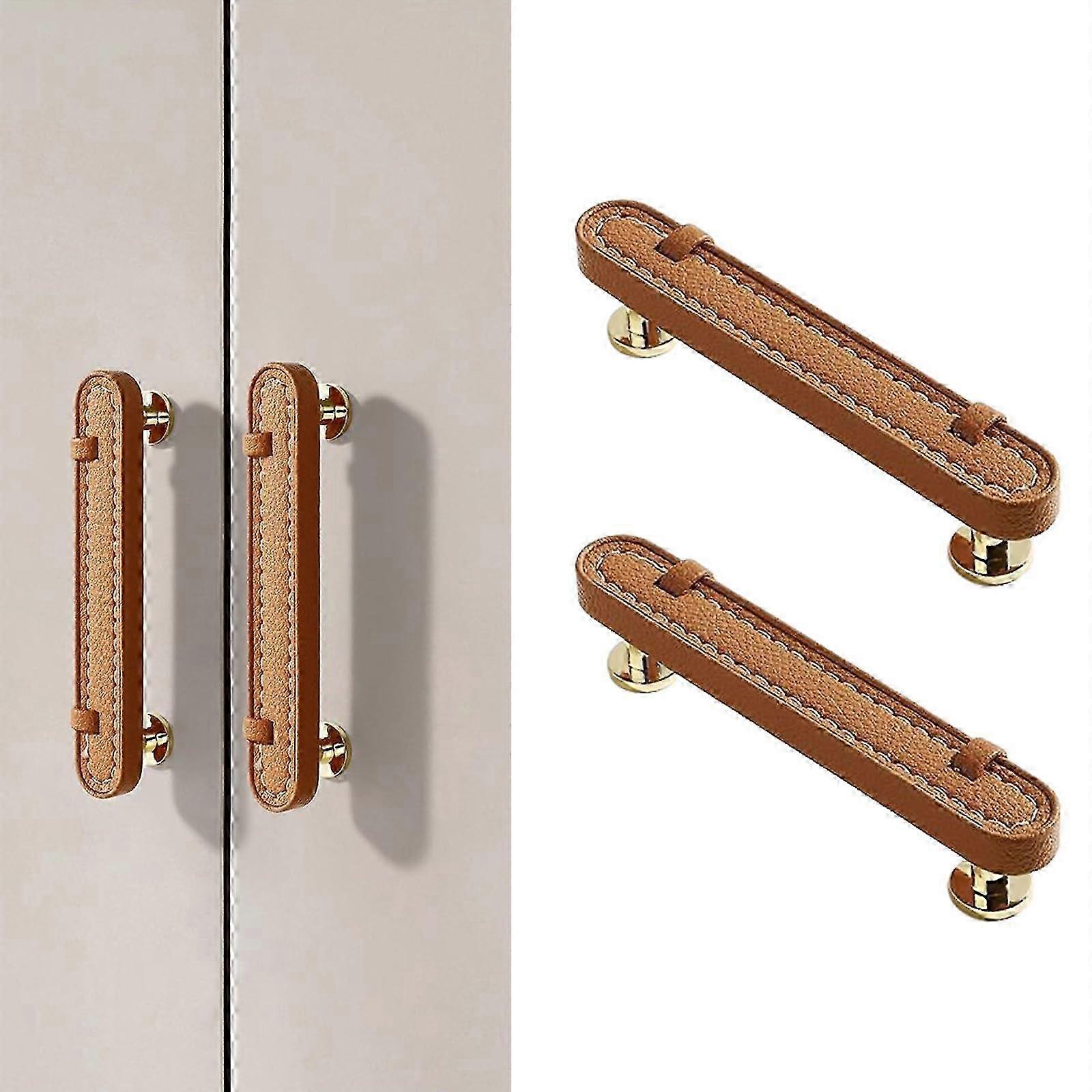 2025 2 Pack Brown Leather Cabinet Pulls 33/4ft Hand Stitched Drawer Pulls for Cabinets, Cupboards, Dressers, Drawers, Bedroom