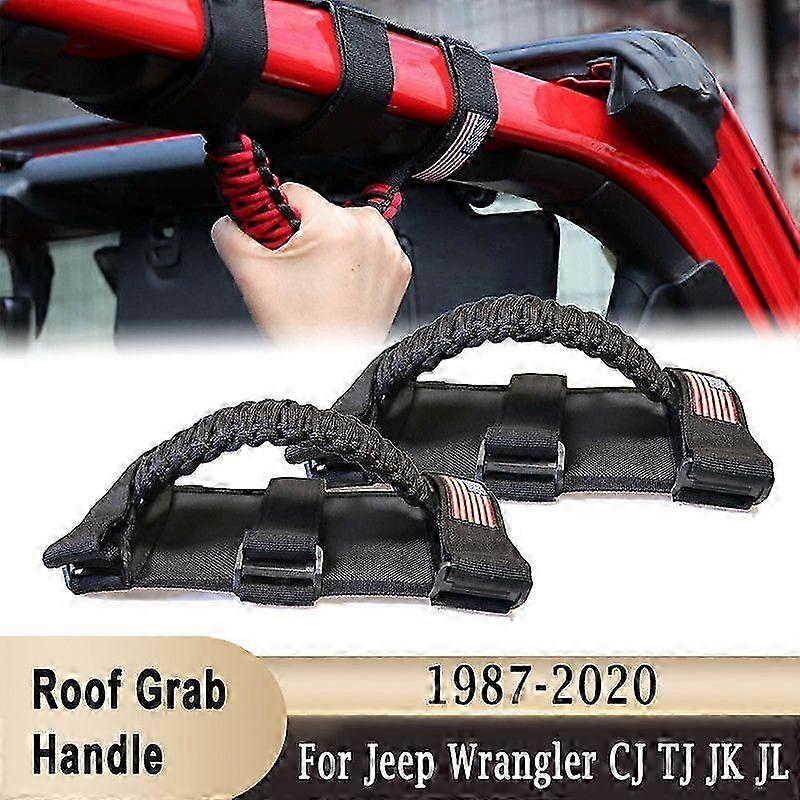 2025 2Pcs Roof Roll Bar Paracord Grab Handles Grip Handles for Jeep Wrangler JK TJ JL CJ YJ 1987-2020 JT UTV ATV USA Flag Type