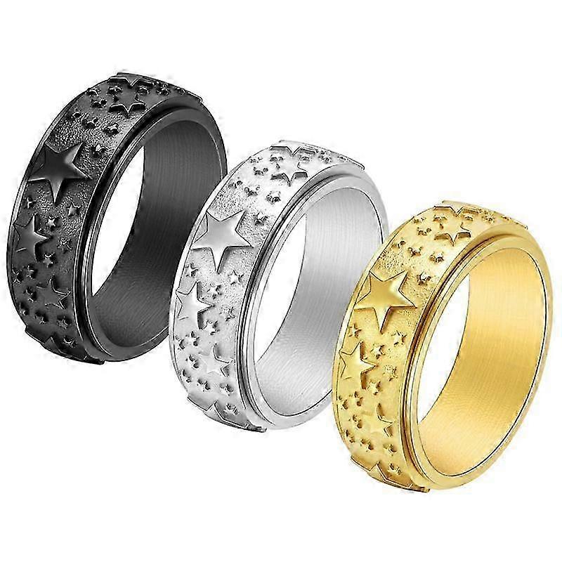 2025 2pcs Stainless Fidget Ring 8mm Moon Star Sun Spinner Rings Silver Gold Black Stress Relieving Anxiety Ring Wide Carved Worry Band For Women Men