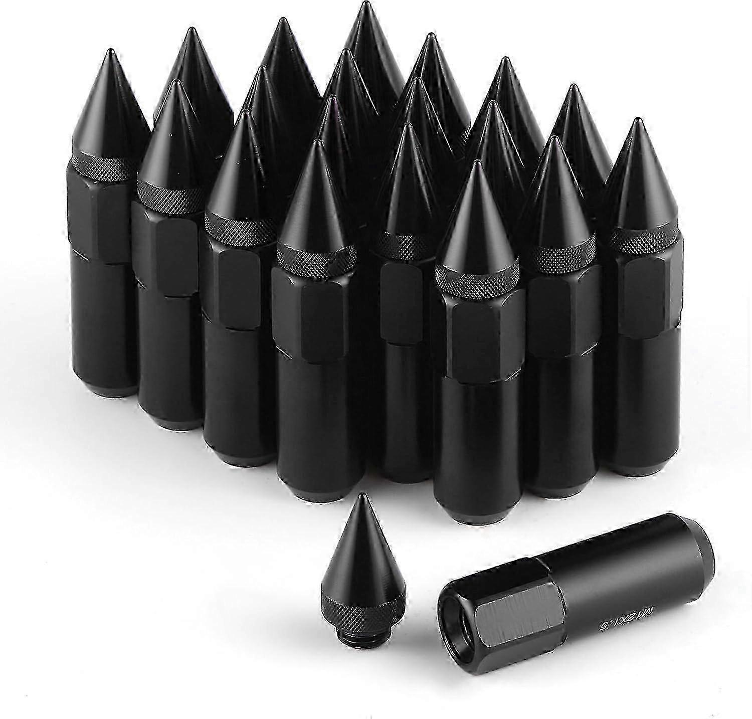 2025 20PCS M12X1.25 Wheel Lug Nuts, Cap Spiked Extended Tuner 60mm Aluminum Wheels Rims Lug Nuts (Black) Black M12X1.25