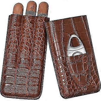 2025 3 Tubes Cigar Case, Crocodile Pattern Leather Cigar Humidor Humidor Cigar Box with Stainless Steel Cigar Cutter(No Cigars)