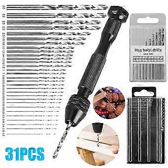 2025 31PCS Precision Pin Vise Hobby Micro Drill Bits Mini Micro Hand Rotary Tool