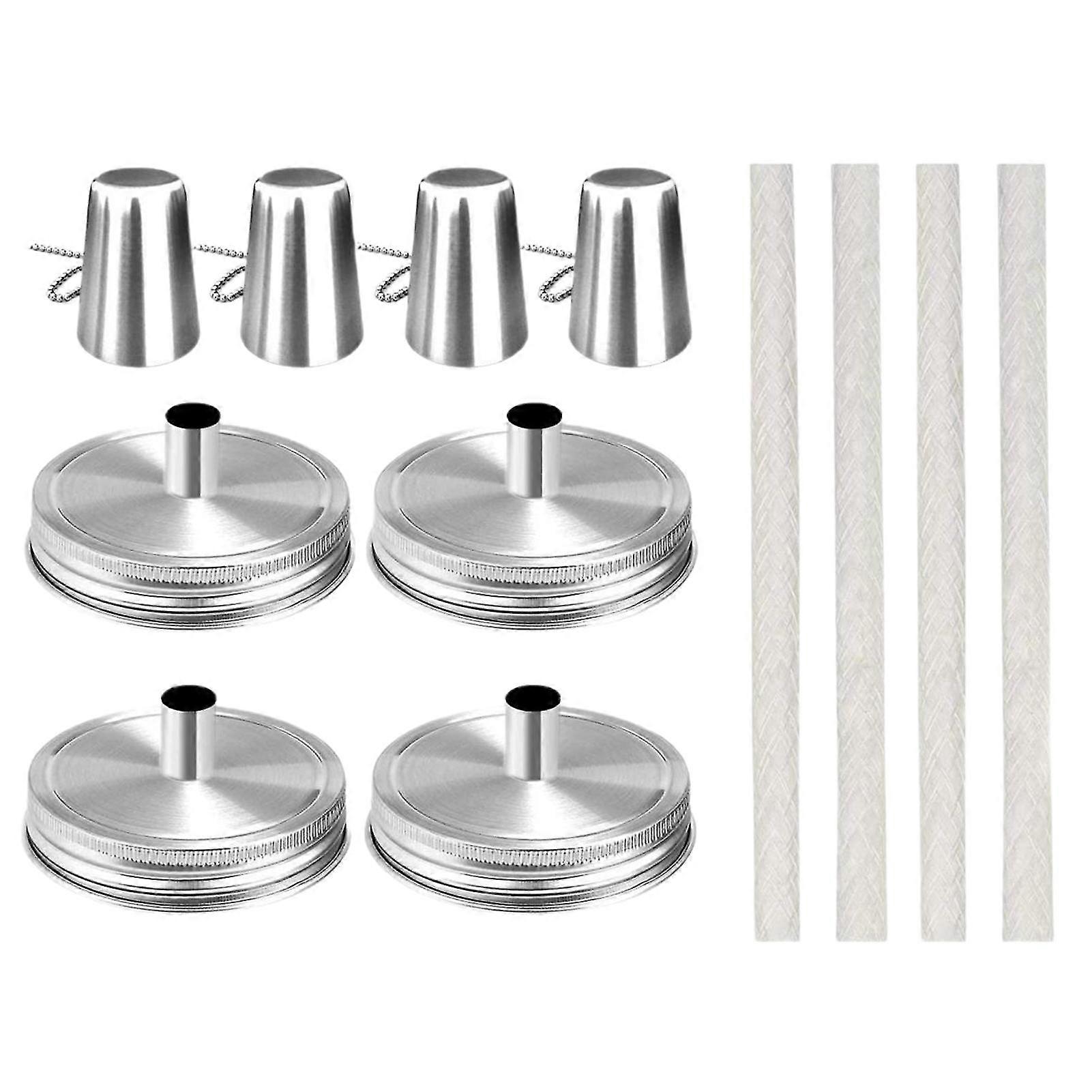 2025 4Pcs Oil Lamp Replacement Wick Set Stainless Steel Lids DIY Oil Lamp Set Outdoor Deck Oil Lamp Fiberglass Wicks Set