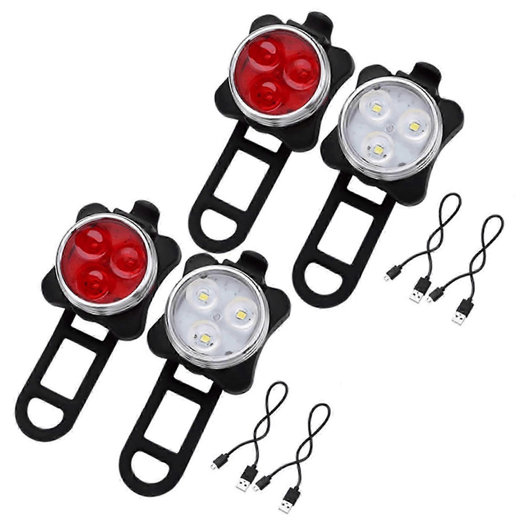 2025 4X Outdoor Bicycle COB 3 LED USB Rechargeable 4 Bike Modes Night RideFront Light Lamp & Rear Tail Light