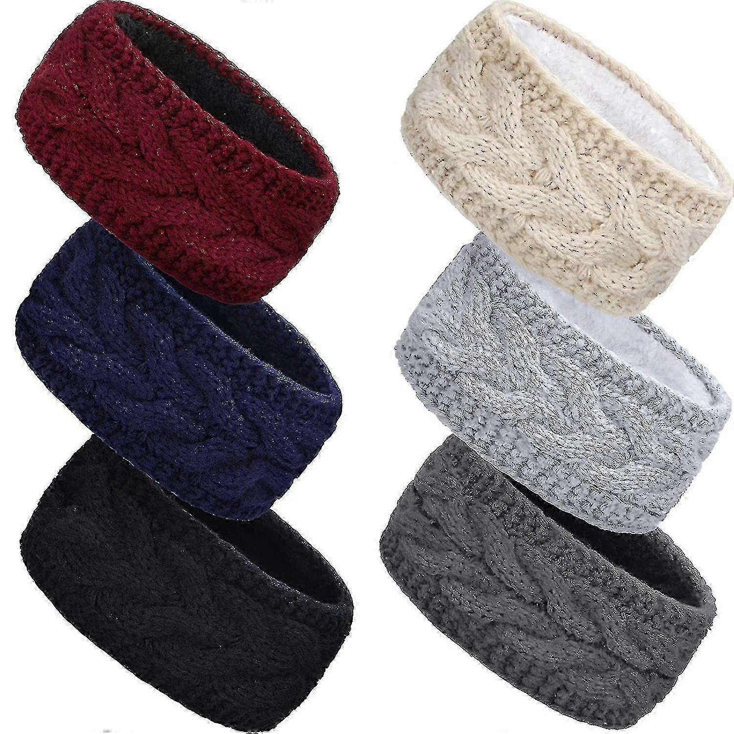 2025 6 Pieces Winter Cable Knit Headband Fleece Lined Winter Ear Warmer Headband Wrap For Christmas Valentines Day Giving (classic Colors)
