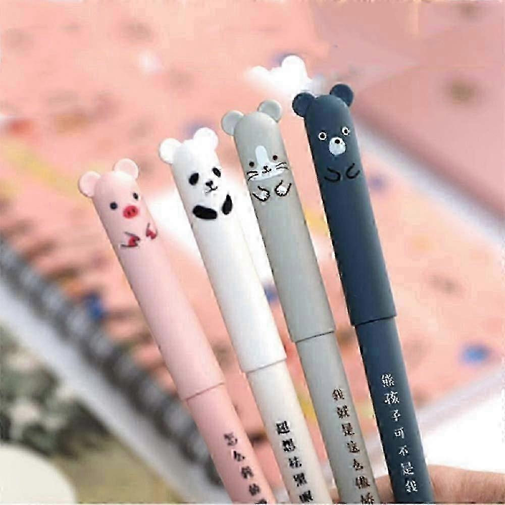 2025 8 Cute Kawaii Erasable Gel Pens - Cartoon Animal Designs for Fun Note-Taking (Black Ink)