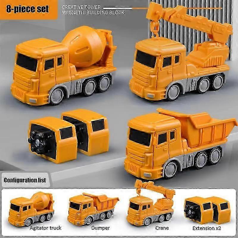 2025 8pcs Magnetic Transformer Engineering Vehicle Assembly Playset Multi-functional Combination Transform Robot Toys