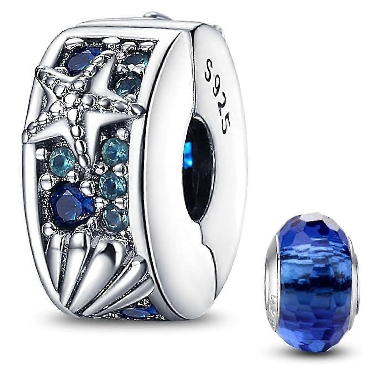 2025 925 Sterling Silver Stopper Spacer Bead Charms for Women Clip Charms Pendant Compatible Pandora Bracelet (With One Space Bead) starfish clip char