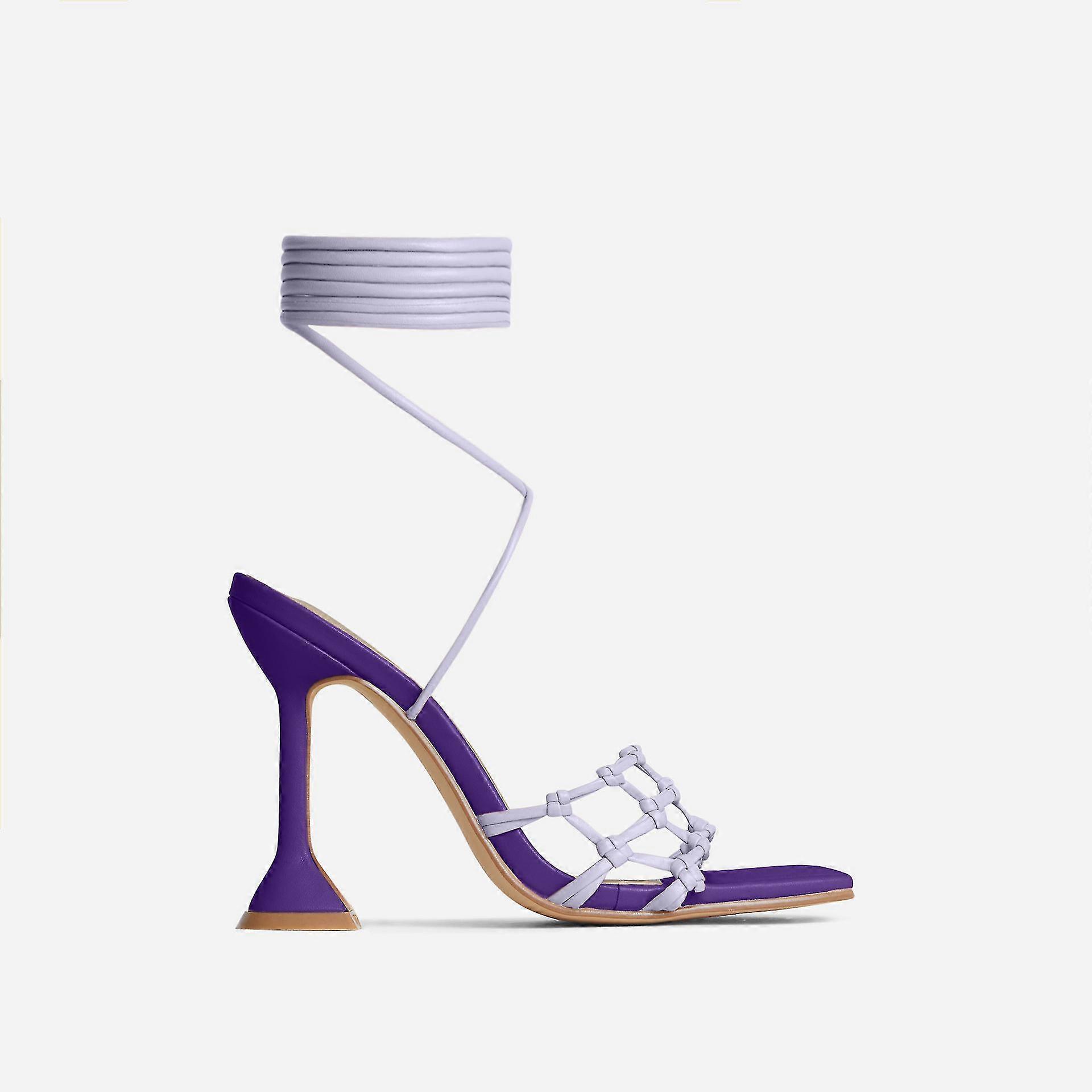 2025 Baldauren Summer New Square Toe Pu High Heel Back Lace-up Non-slip Women's Black Large Size Fashion Sandals