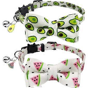 2025 Heytea 2 Pack/Set Printed Cat Collar Breakaway with Bell Charms and Bowtie, Cute Kitten Bow Tie Collars compatible Kitty Puppies and Other Small