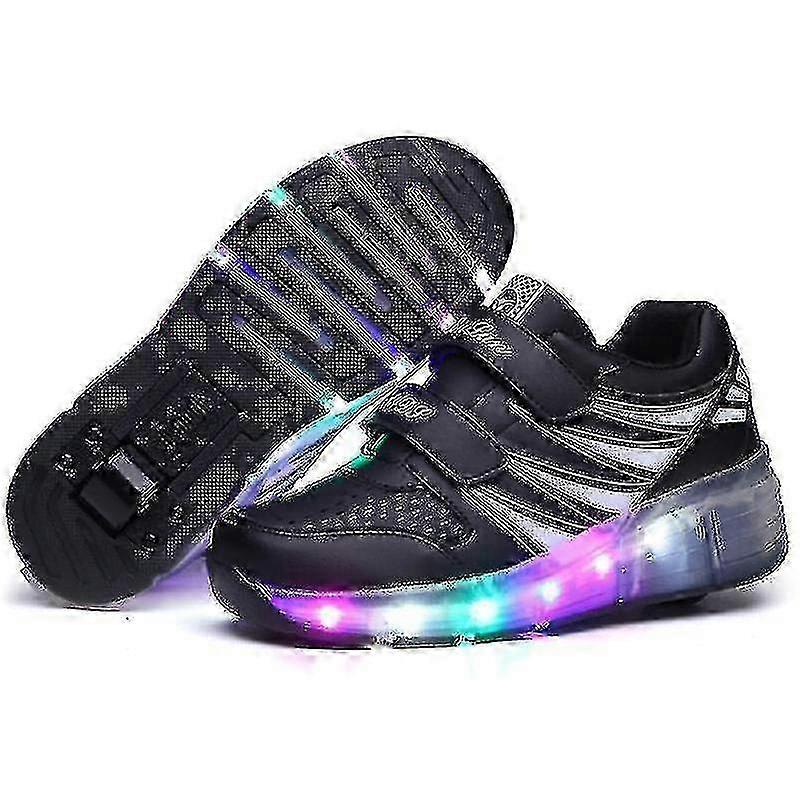 2025 Led Light Up Roller Shoes Double Wheel Usb Rechargeable Skating Shoes Black/pink