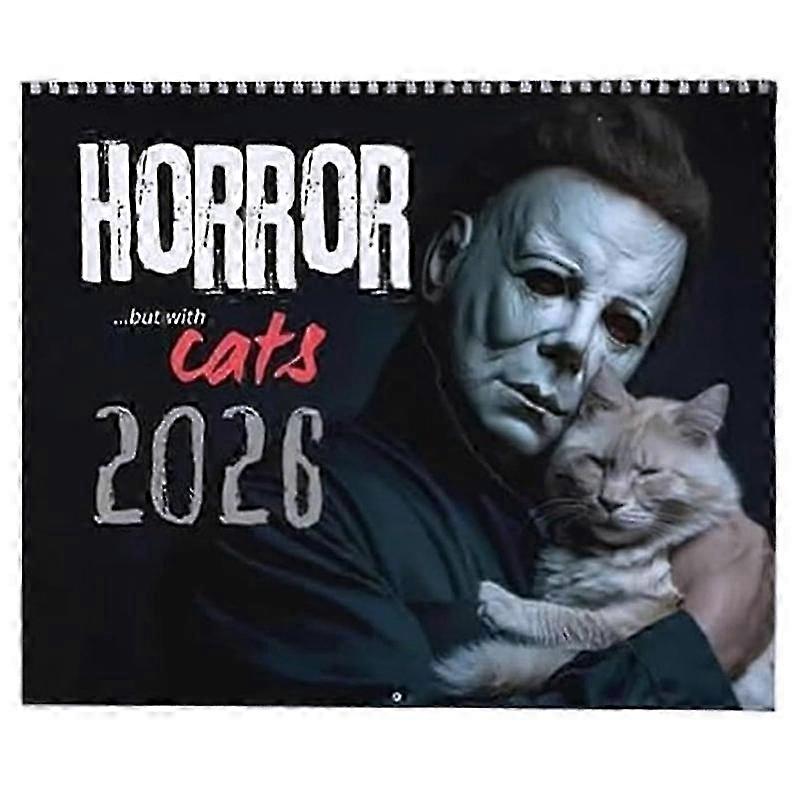 2026 Halloween Horror Movie & Cats Wall Calendar Halloween Horror Wall Calendar, Spooky Cat Calendar Spiral Bound 12 Monthly 2025