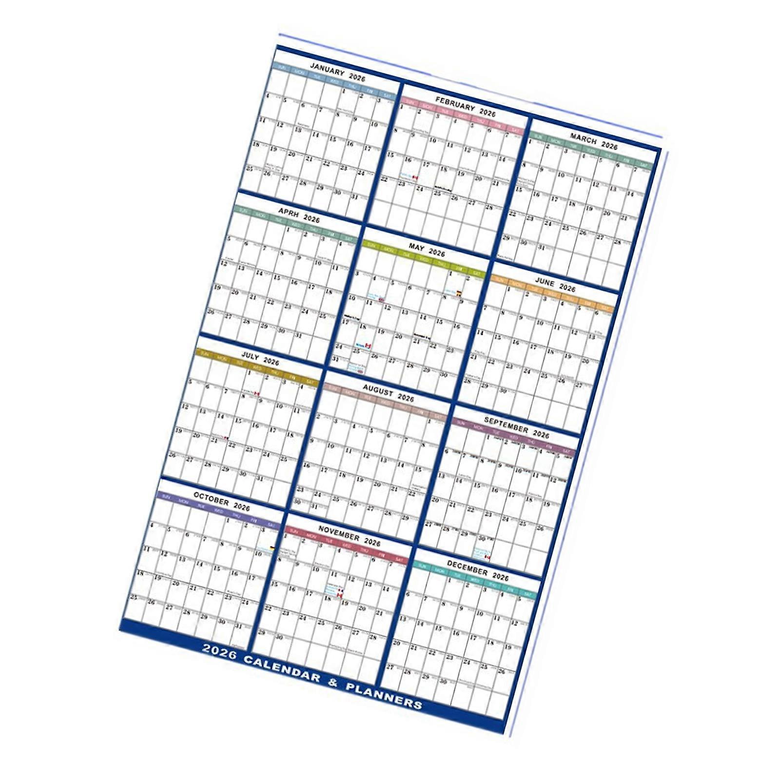 2026 Wall Calendar Planner 2026 Full Year to View Calendar Erasable Wall Planner Family Home Organiser Yearly Planner Multicolor