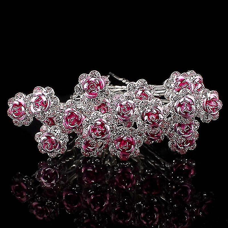 20Pc/Lot Girls Bridal Crystal Diamante Flower Rose Hairpin Clip Barrettes Sticks Hair Braider Wedding Styling Tools Accessories