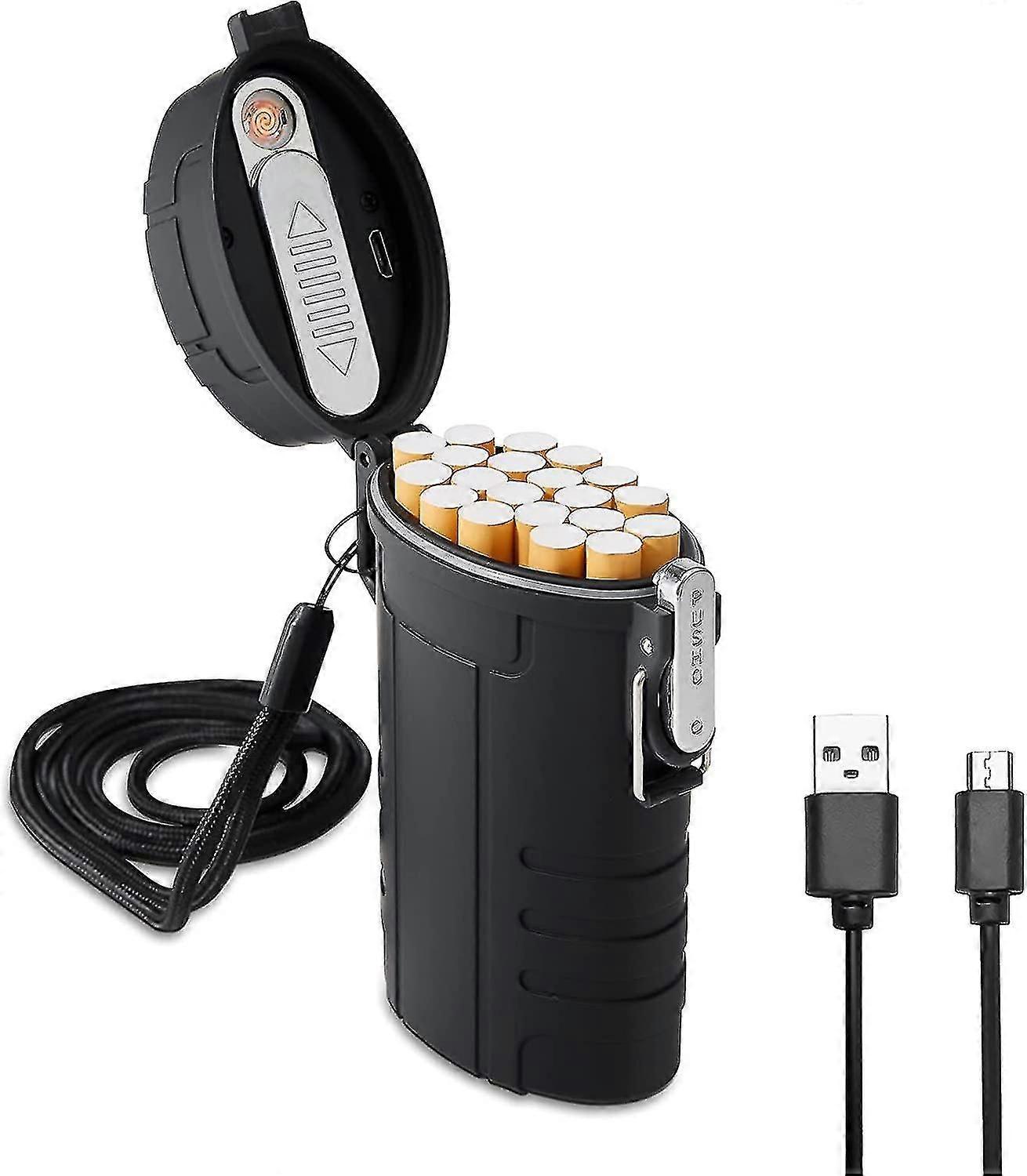 Large CapacityThis compact cigarettes joint holder is only 1.8 oz and theres a lanyard for easy carrying with your backpack. You can hold entire 20 pcs sized 84mm cigarettes or pre-rolls with this case Indoor or outdoor, keeping the tobacco particles from spilling into your bag or pocket. If remove the lighter on the lid with a screwdriver, youll get a cigarette case for 100's USB ChargingThis is a cigarette case integrated with USB charging electric lighter, which can be charged on a laptop, socket, power bank or car through a USB data cable or mobile phone charger. You can light a cigar or cigarette just by sliding the button and the flameless tungsten ignition will work safely. High Quality & DurableBeing wear-resistant and corrosion resistant, this moisture proof cigarette holder has a sturdy construction and is made of smell proof ABS material, which can protect your cigarettes from being crushed and keep them of their original flavor. An ideal gift for you and any other smokers. Waterproof BoxWaterproof joint holder case with rubber sealing ring and buckle for keeping cigarettes completely dry when exposed to rain or when the case is submerged in water, which is also a great choice to store herbs, batteries, fishing gear, needlework or other small gadgets. Great for outdoor adventures like camping, fishing, hiking and climbing. After sale serviceWe provide lifetime warranty for any rechargeable joint cases. You can rest assured that the great quality of product and service will accompany the whole journey. If you have any problems, please do not hesitate to seek email support.