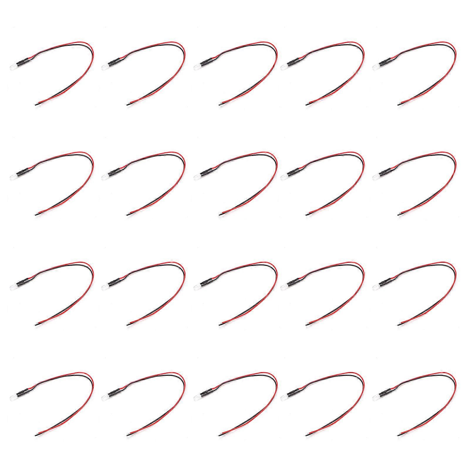 20Pcs LED Pre Wired LightEmitting Diode Normally Open Round High Brightness InLine 12V 5mm(White Emit Red )