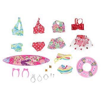 21PCS 1:12 Scale Doll Swimwear Kit Swimming Ring Surf Skateboard Accessories Doll Bathing Clothes