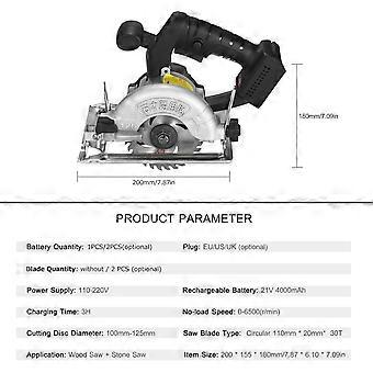21V Cordless 6500RPM 4.0Ah Battery Fast Charger 45 Degree Adjustable Bevel Cutting with 110mm 30T Blades Circular Saw Woodworking Tools